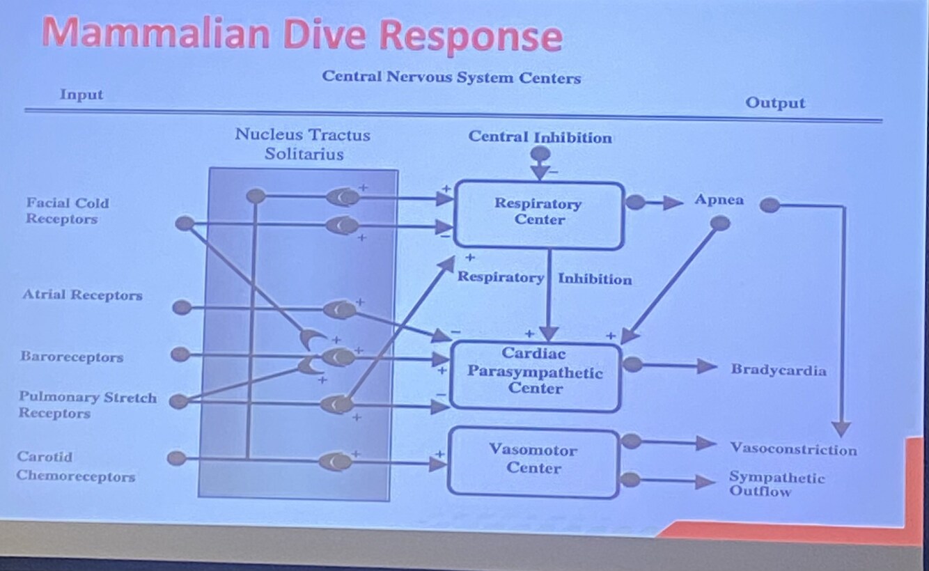 DIVE RESPONSE - seen in all vertebrates as a protective mechanism when we are rendered unbreathing by underwater submersion