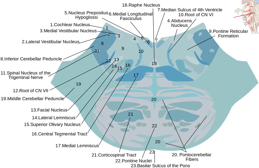 cerebellum, pons, medulla