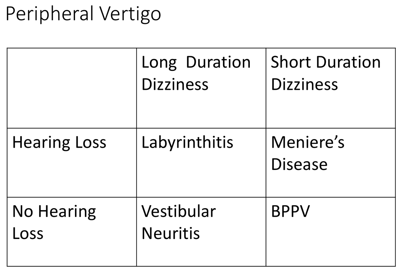 What is the difference between peripheral & central vertigo?
