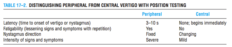 What should be performed on the physical exam in a patient presenting with vertigo?