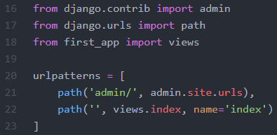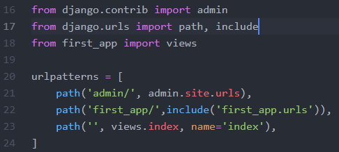 What does the path() function look like when one is trying to connect url patterns from an app to the urlpatterns of the project?