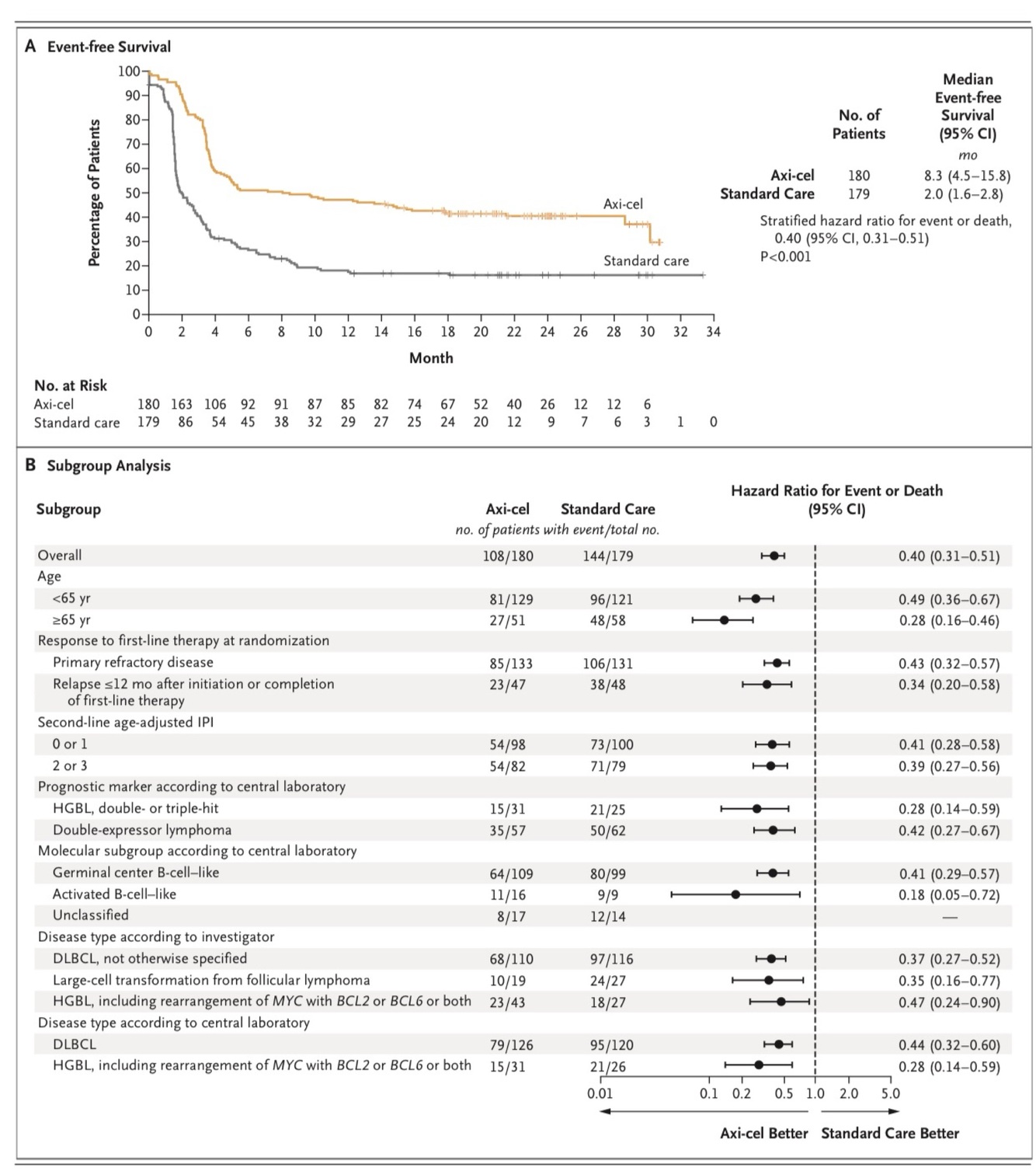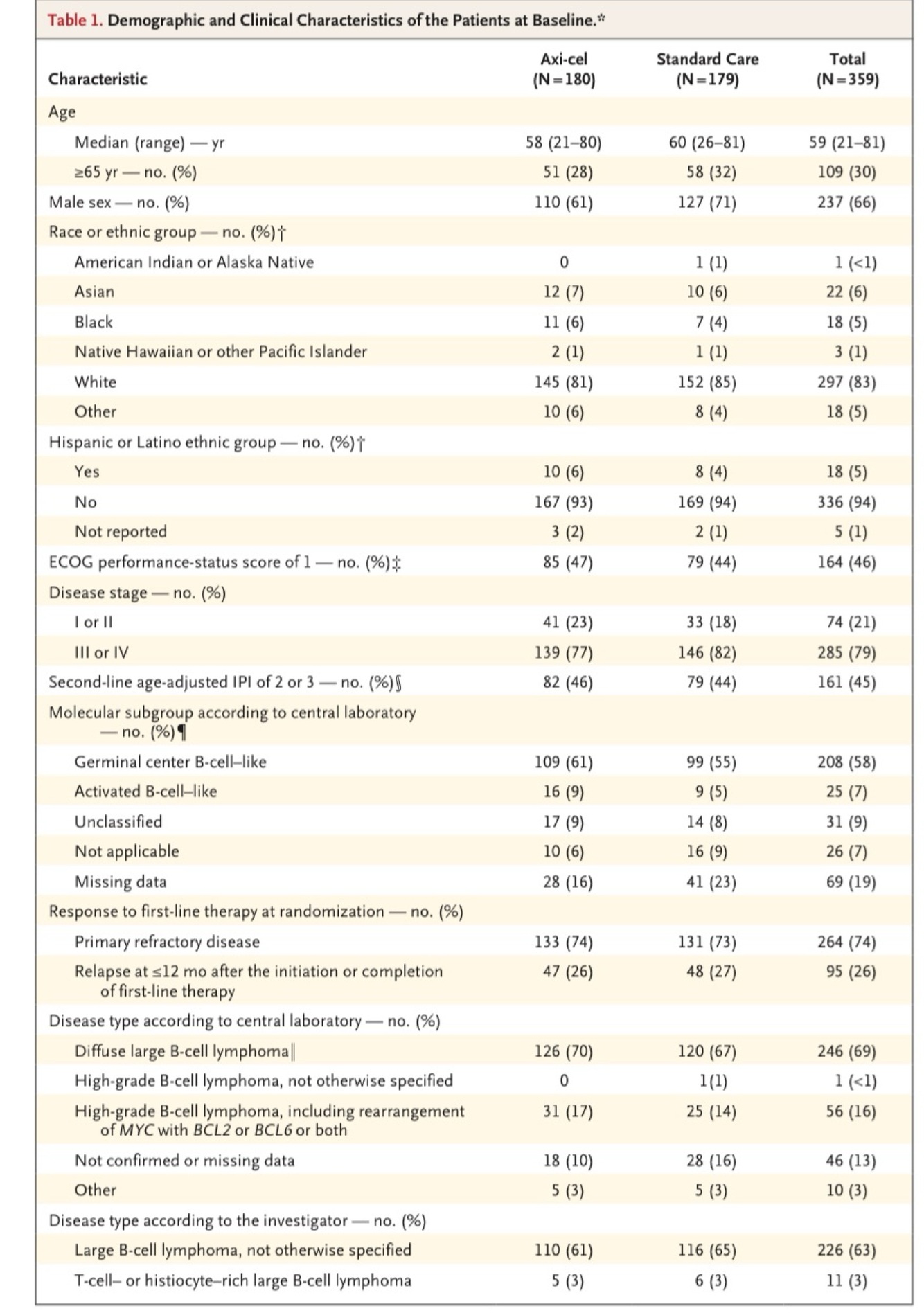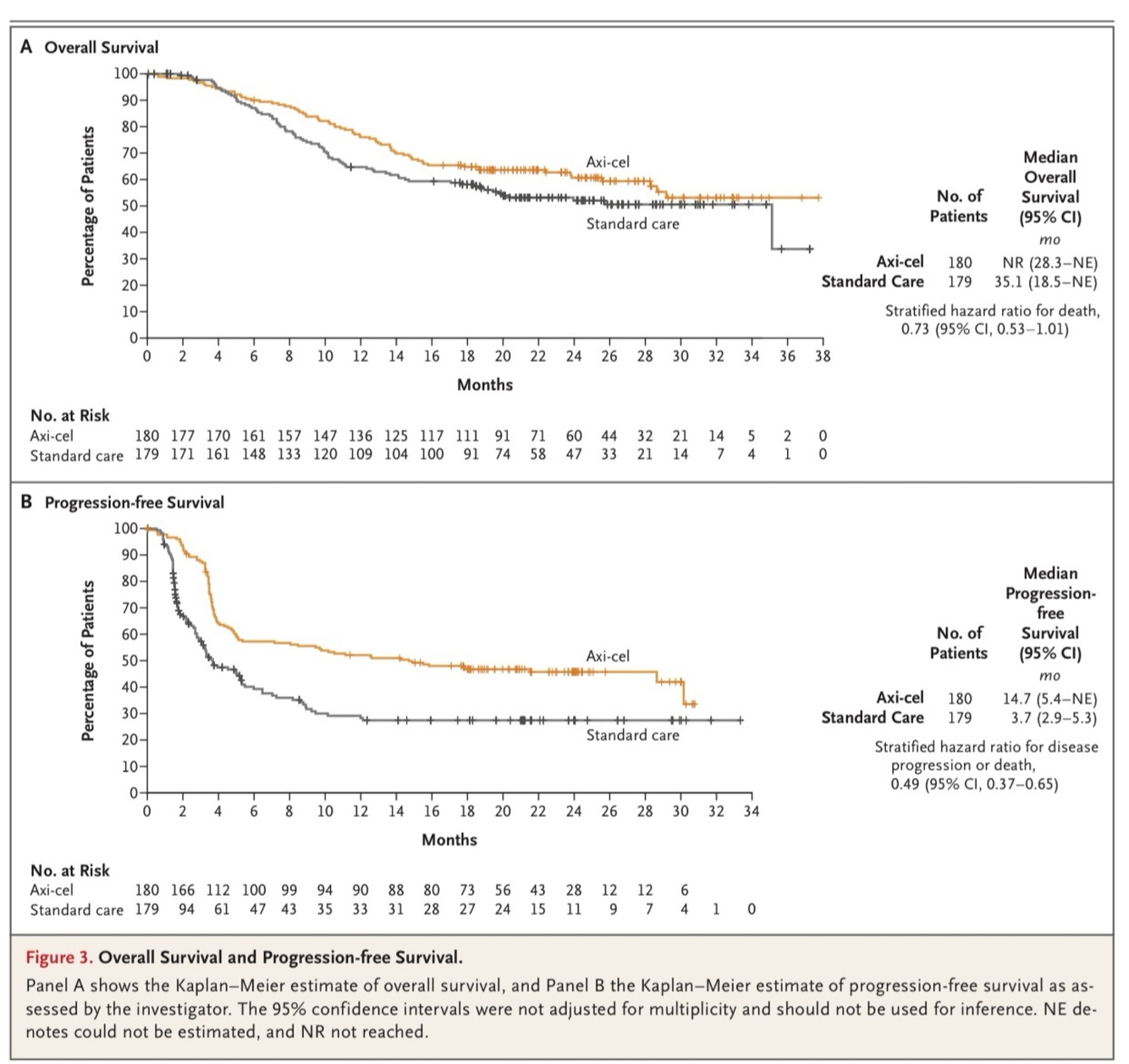 FAse III, radomizado que comparou CART ou QT+TMO autologo para LDGCB após recaida dentro de 12 meses da primeira linha