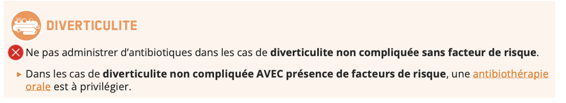 Quels sont les facteurs de risque qui nous indiquent que l’on doit traiter la diverticulite avec ATB?