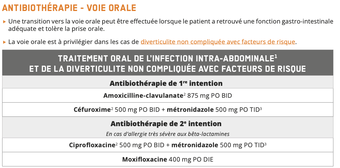 Quel est le traitement de la diverticulite non compliquée avec facteurs de risque?
