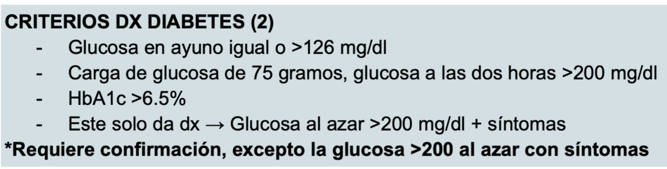 px con glucosa en ayuno > 300, Hg1Ac > 10, persistencia de síntomas de hiperglucemia o falla a alcanzar tratamiento a dosis