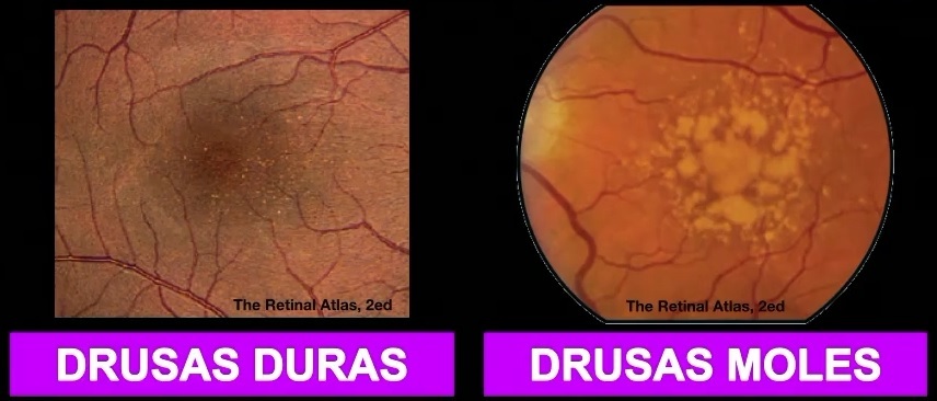 Material Hialino rico em lipídios, que se acumulam entre o EPR e a Membrana de Bruch em pacientes com predisposição, ao longo dos anos.