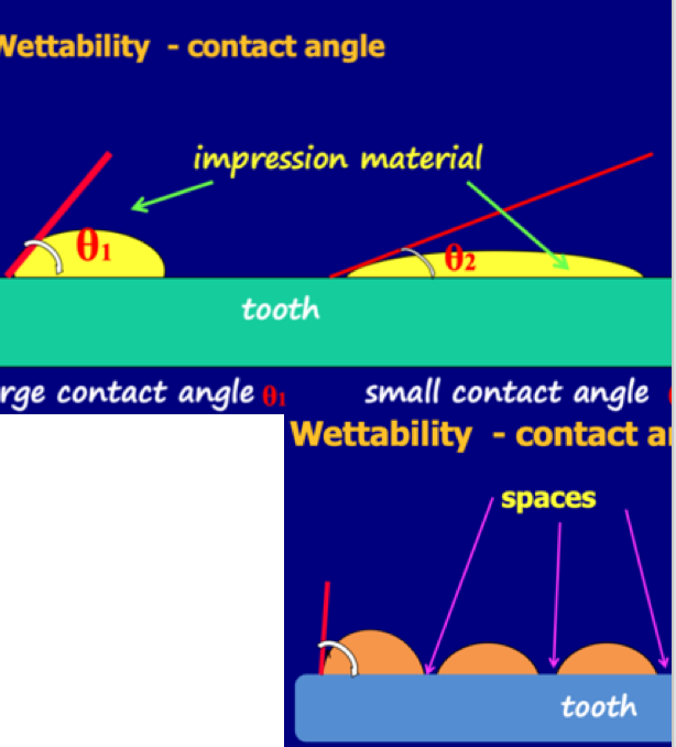 A small contact angle- means there is no space between the globules meaning the IM contacts the target surface allowing full replication.