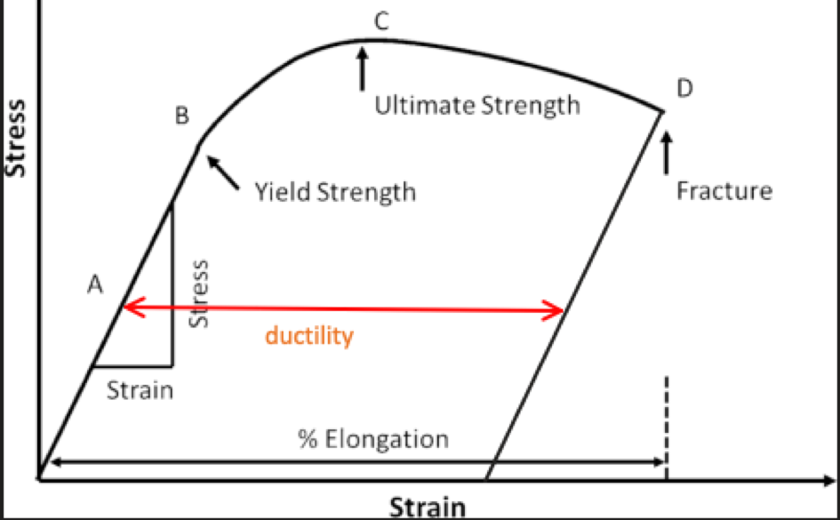 • Ductility is the amount of plastic strain produced at fracture