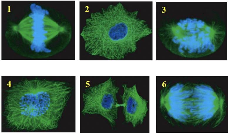Wat is de juist chronologische volgorde van de zes afbeeldingen?