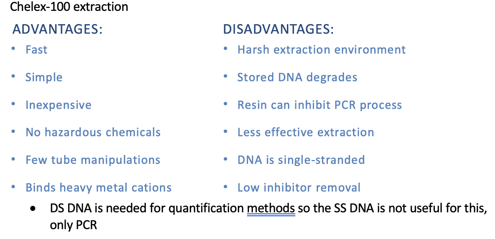 What are the advantages and disadvantages to chelex-100 extraction?