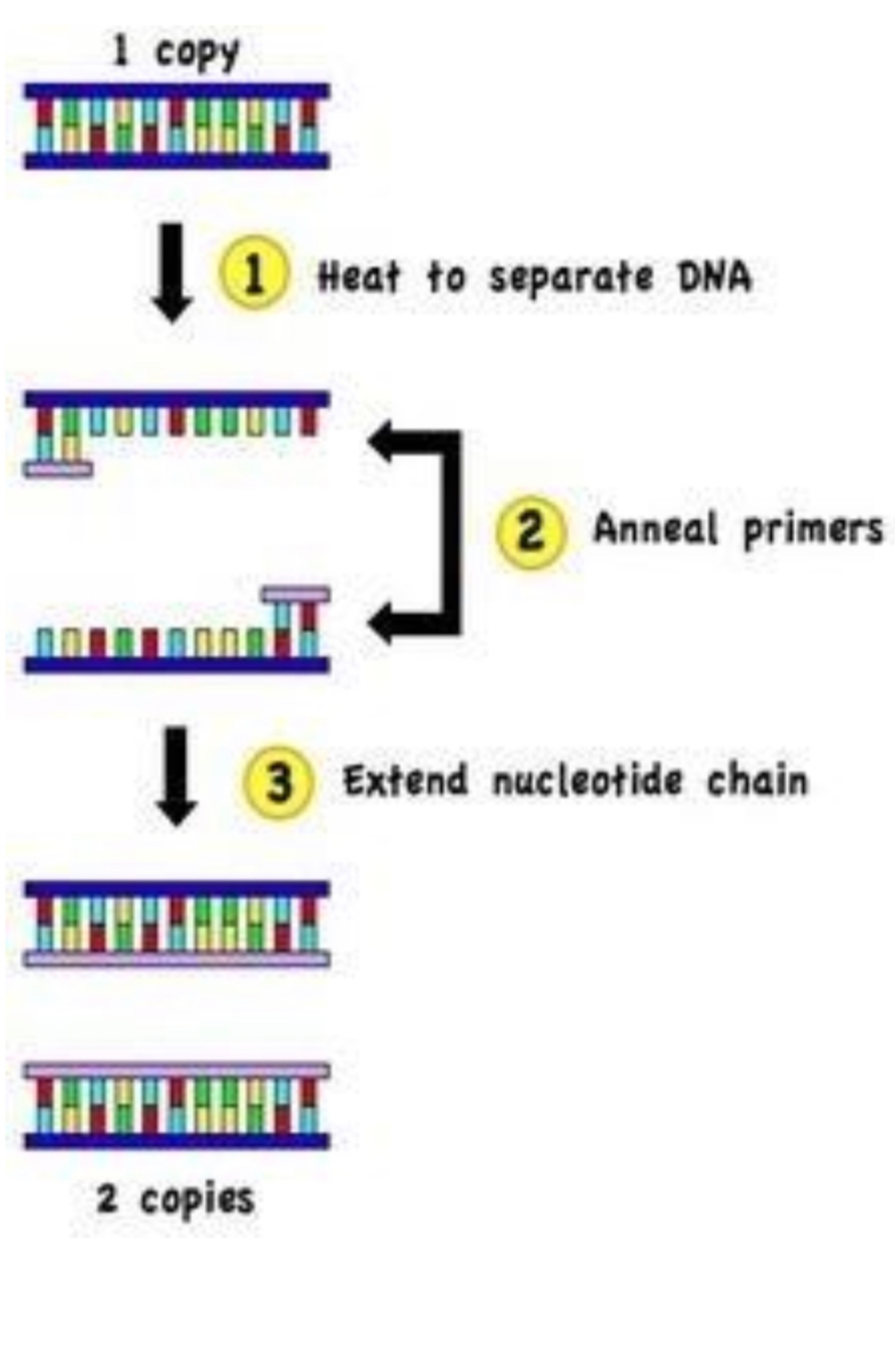 - heat-tolerant/ Taq DNA polymerase copies strands