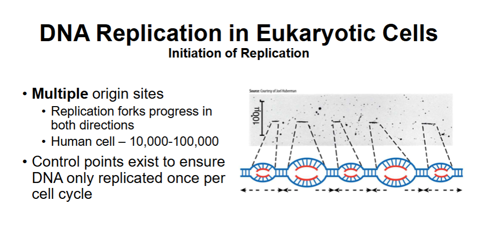 Describe initiation of replication in eukaryotic cells