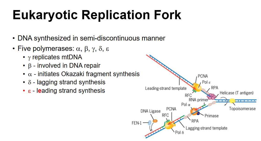 Describe the eukaryotic replication fork