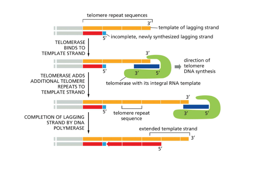 What is the role of telomerase in the lagging strand