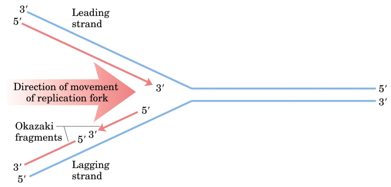 ⇒ synthesizes 3’→5’, daughter strand formed 5’→3’
