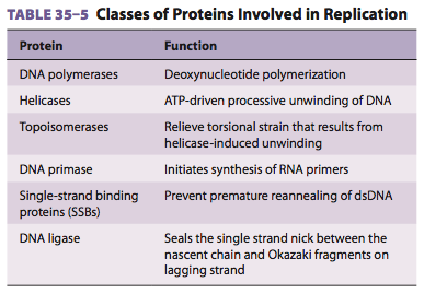 Which types of proteins are involved in DNA synthesis and what is their function?