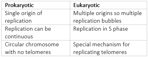 Differences between eukaryotic and prokaryotic replication?