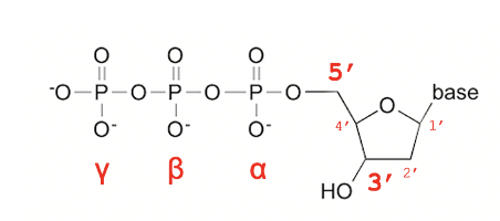On the following diagram label the phosphate groups either alpha, beta or gamma