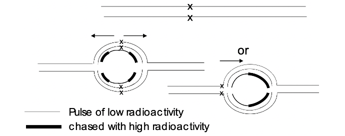 Firstly the genome was exposed to a pulse of low radioactivity before then being chased with high radioactivity