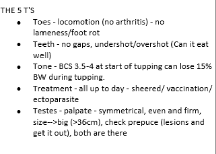 What external things should be checked when assessing a male for its breeding quality