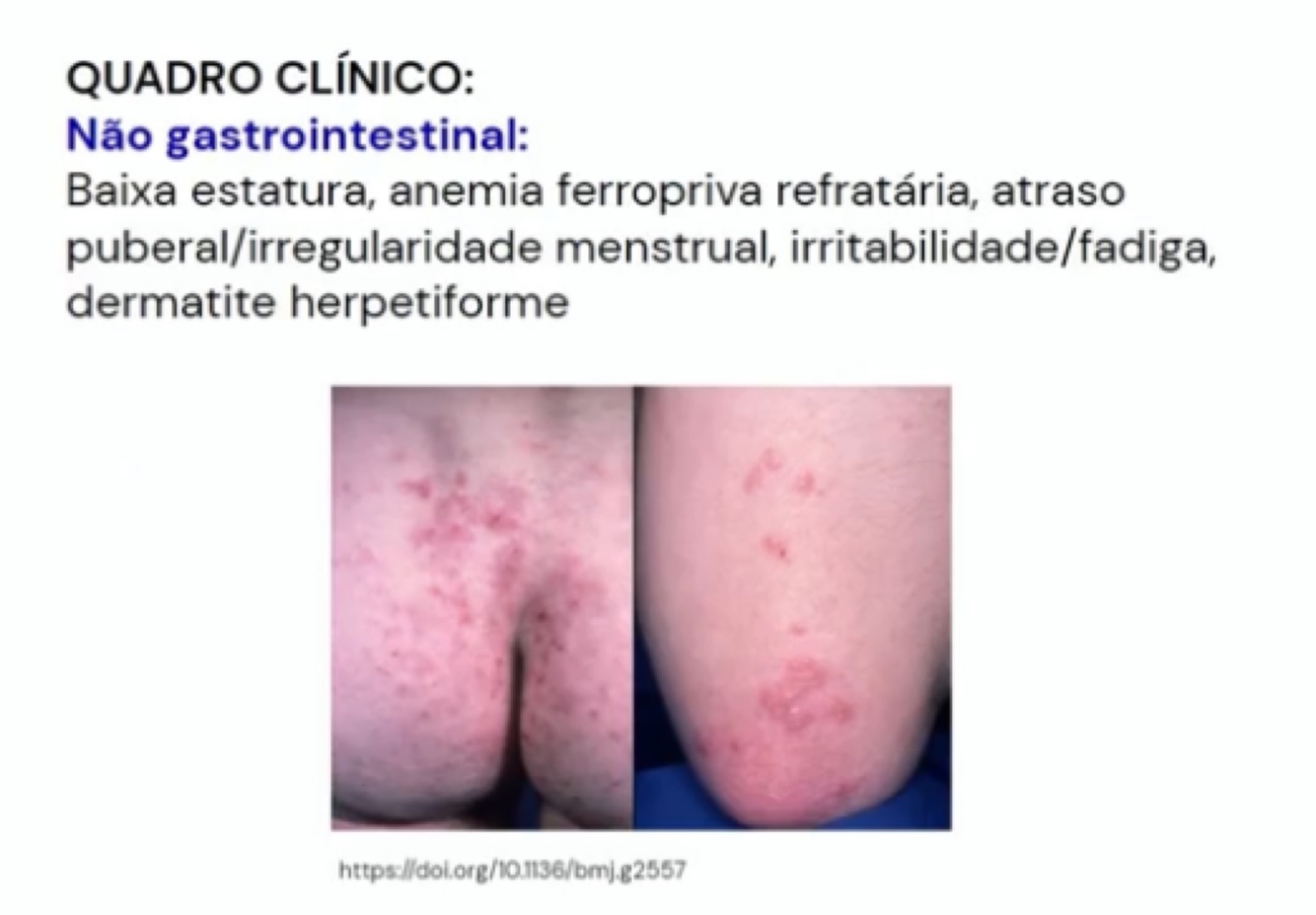 Qual o quadro clínico não gastrointestinal da doença celíaca?