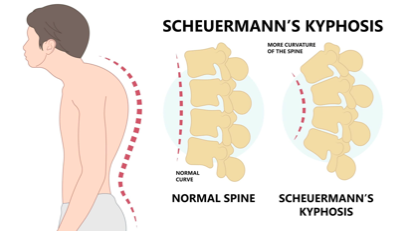 É uma condição que causa cifose estrutural rígida e juvenil na coluna vertebral.