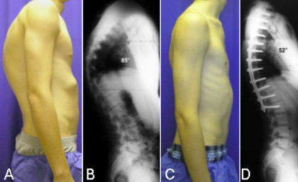 Aproximadamente 49% dos pacientes mostram melhora da cifose torácica com o uso de órtese.