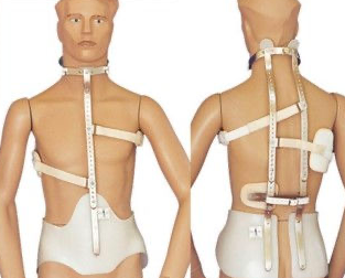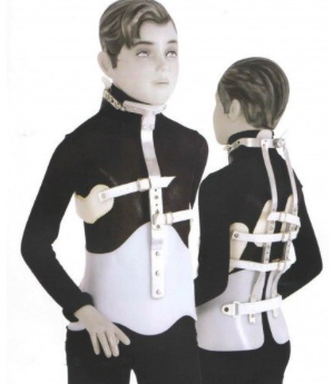O tratamento com órteses pode incluir o colete de Milwaukee para curvas com ápice acima de T7 e órteses de baixo perfil com apoio axilar para curvas abaixo de T7.