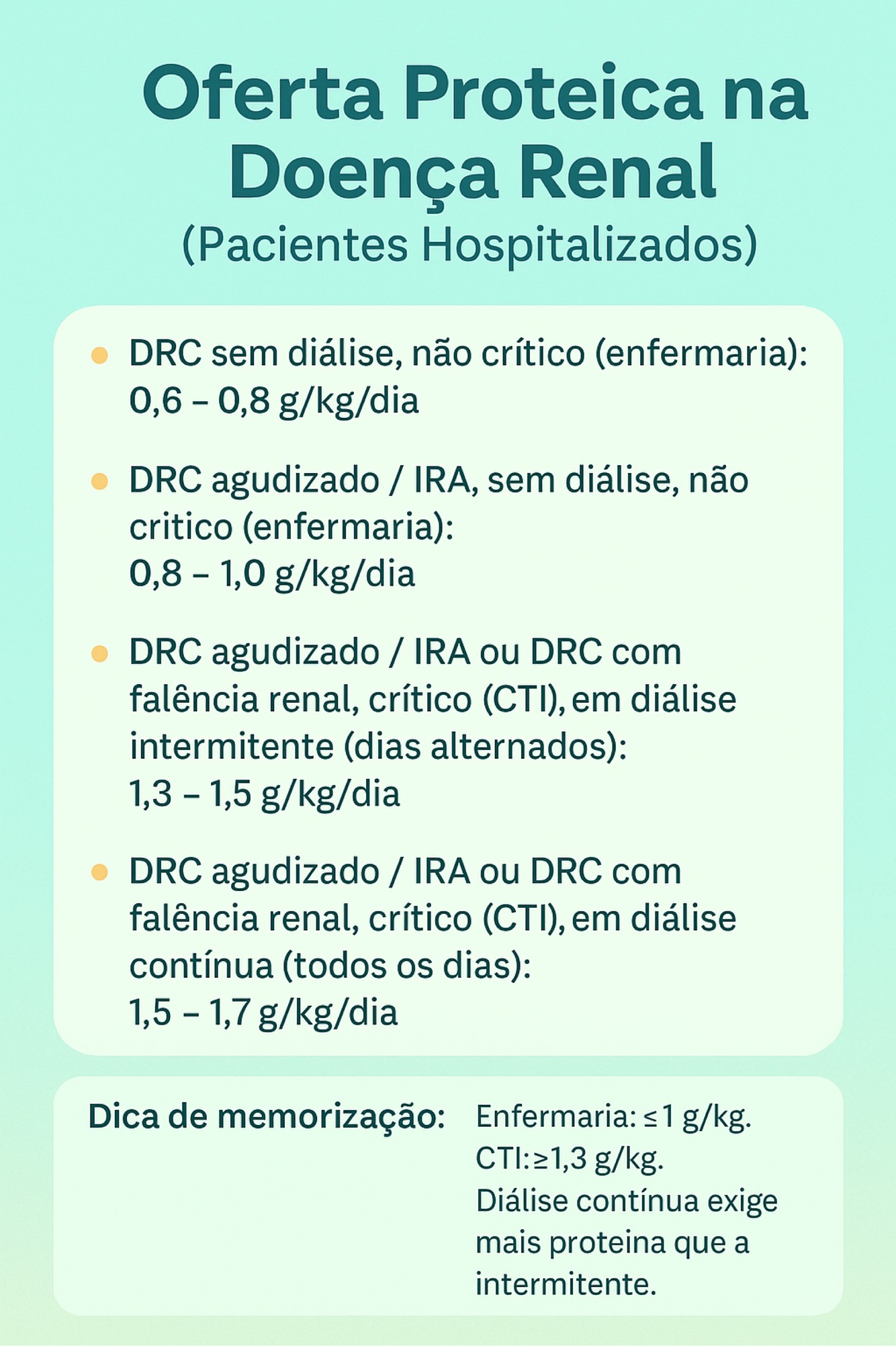 Diálise peritonial : 8 a 20 g de proteína/dia, incluindo até 5–15 g/dia de albumina.