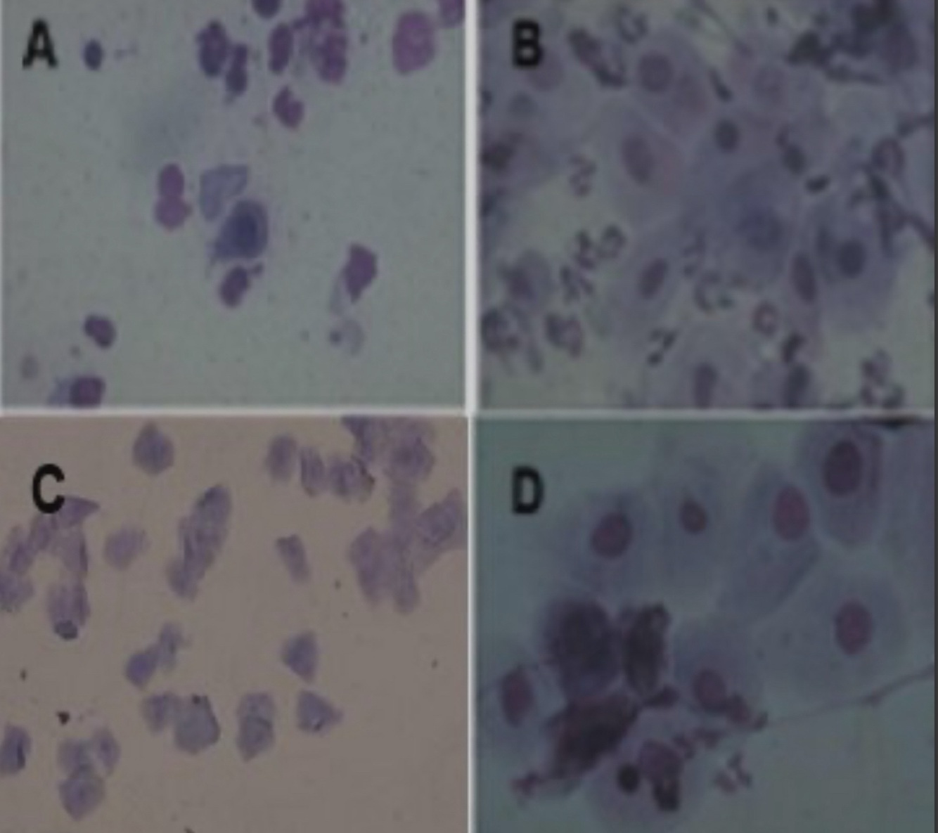 Dogs in estrus should have cellular vaginal cytology consisting predominantly (>90%) of cornified epithelial cells. This corresponds to image C.
