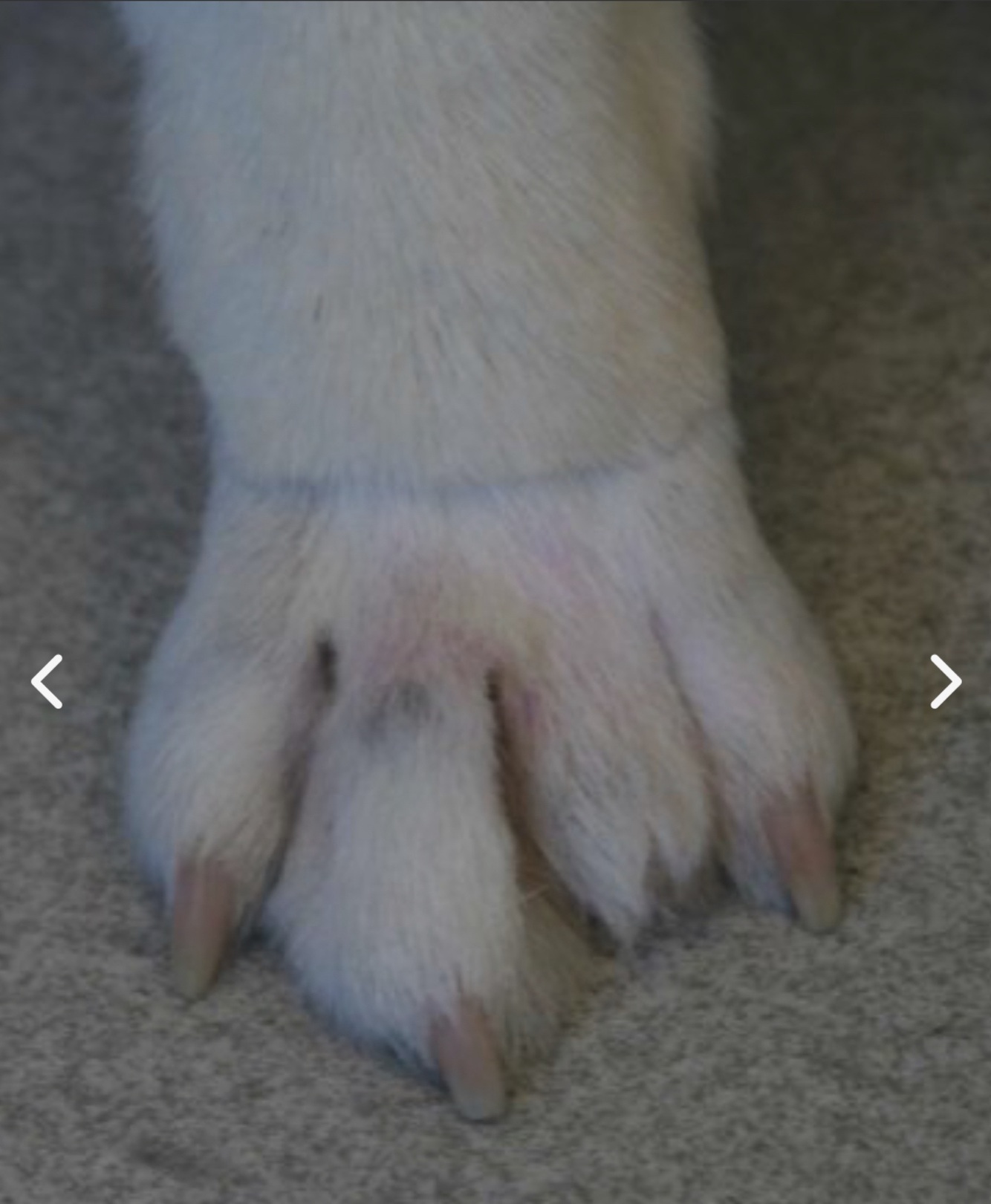Which digit has been partially amputated in the picture below? (hint: this is the right forelimb of a dog)