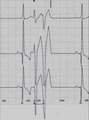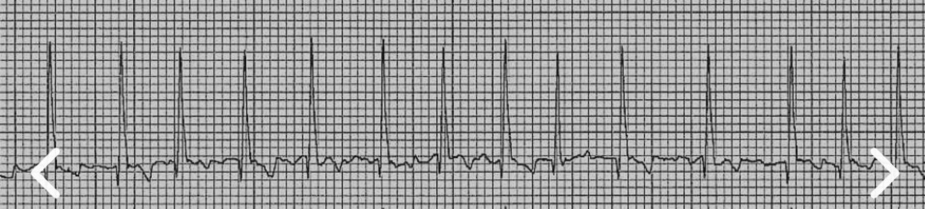 This ECG shows atrial fibrillation. Atenolol is a beta-blocker and will slow AV nodal conduction to decrease the ventricular response rate to atrial fibrillation. Procainamide is a class 1A anti-arrhythmic and can be used in attempts to convert atrial fibrillation to a normal sinus rhythm, though it is rarely effective. Diltiazem is a calcium channel blocker and can be used to slow AV nodal conduction and ventricular response rate. Digoxin will increase vagal tone to the AV node to slow conduction and decrease the heart rate. Isoproterenol is a nonspecific beta receptor agonist, and will increase the ventricular rate in response to atrial fibrillation, thus is inappropriate in the management of this dysrhythmia.