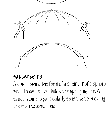 A dome having the form of a segment of a sphere; with its center well below the springing line. It is particularly sensitive to buckling under an external load.