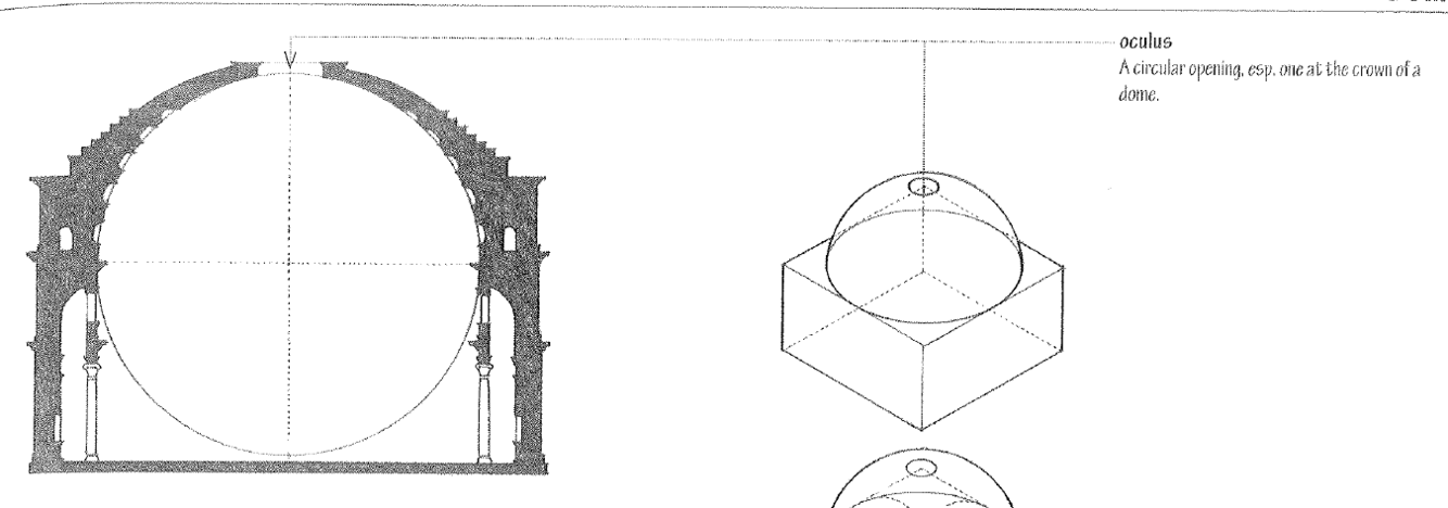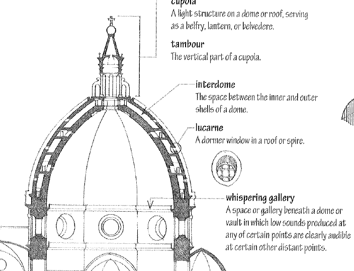 A vaulted structure having a circular plan and usually the form of a portion of a sphere, so constructued as to exert an equal thrust in all directions.