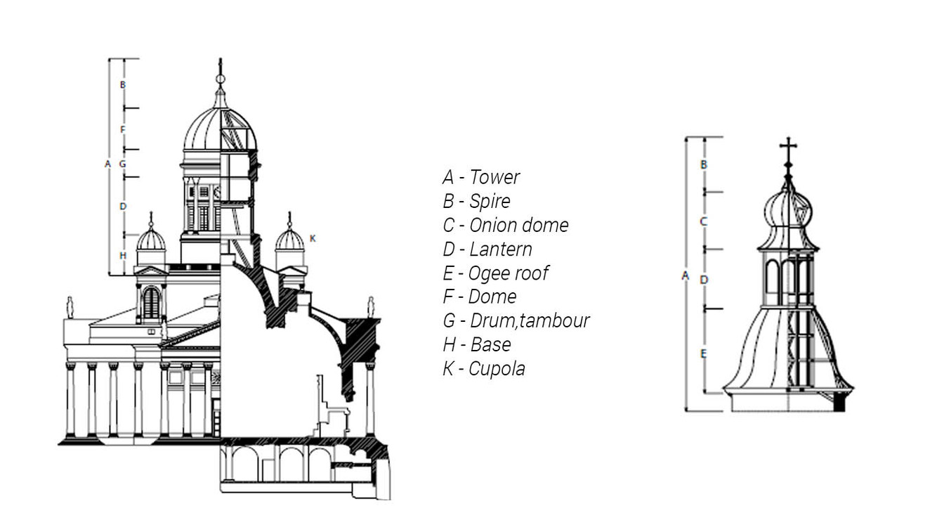 A light structure on a dome or roof, serving as a belfry, lantern, or belvedere.