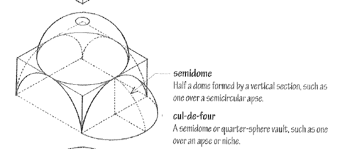 A semidome or quarter-sphere vault, such as one over an apse or niche.