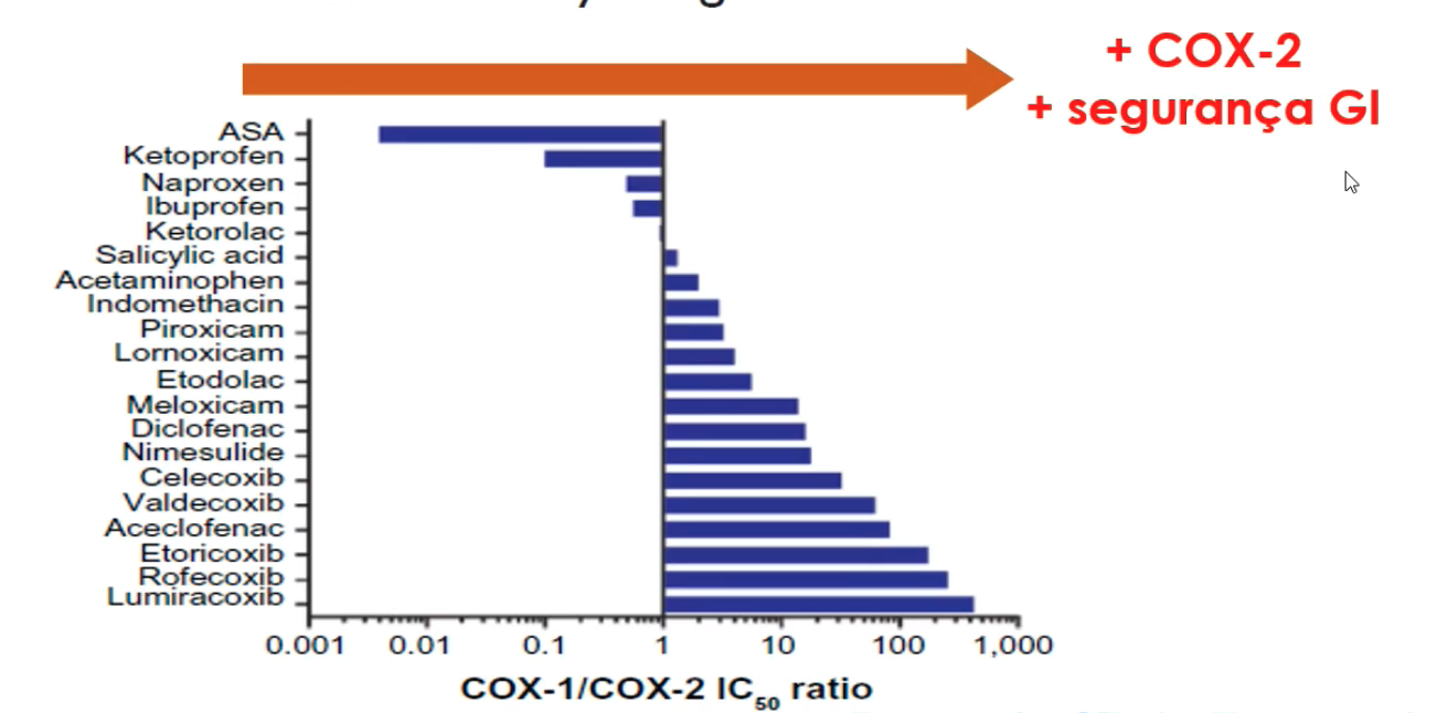 Perfil de seletividade de inibição da Cox-1 e Cox-2 pelos AINEs