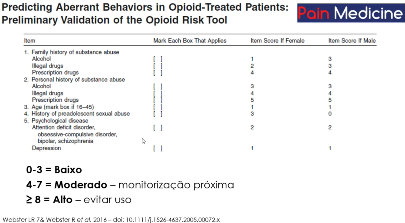 Qual a escala para predizer risco de adição por opioides?