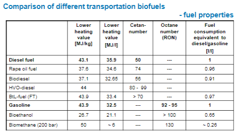 Comparison through fuel properties, which fuel properties are important?