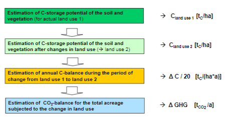 Give the simplified model for Estimation of C-storage potential and GHG-emissions caused by changes in land use