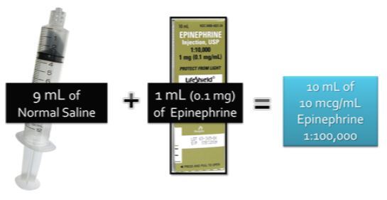 1:10,000 - 1mg Q 4mins up to 5mg total