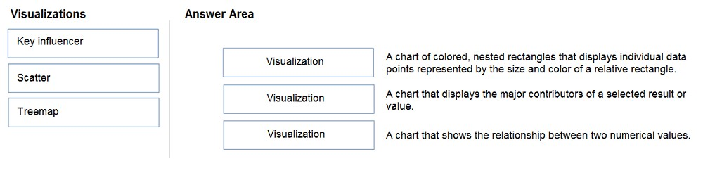 To answer, drag the appropriate visualization type from the column on the left to its description on the right. Each visualization type may be used once, more than once, or not at all.