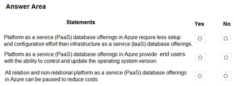 For each of the following statements, select Yes if the statement is true. Otherwise, select No.