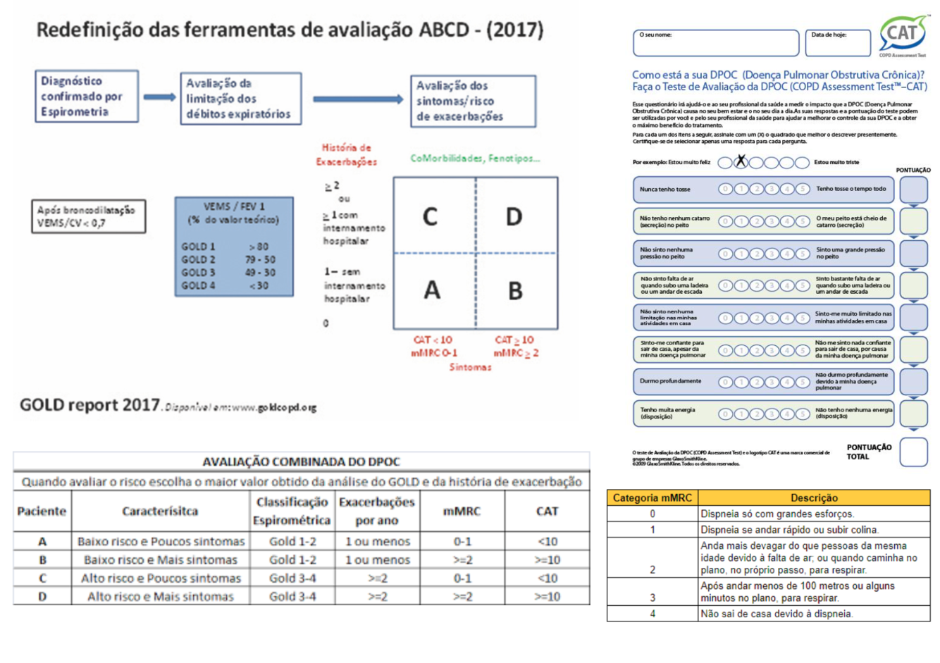 Como são usados os ferramentas de avaliação combinada ABCD para determinação da gravidade da DPOC?