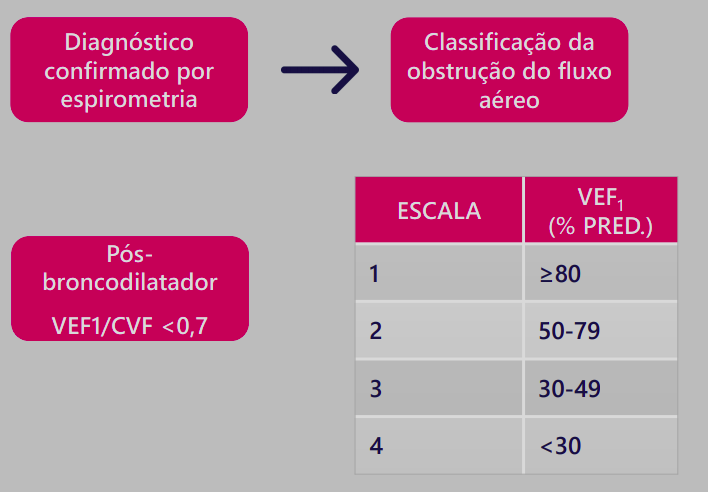 Confirmar o diagnóstico por meio de uma espirometria (VEF1 /CVF pós-broncodilatador <0,70)