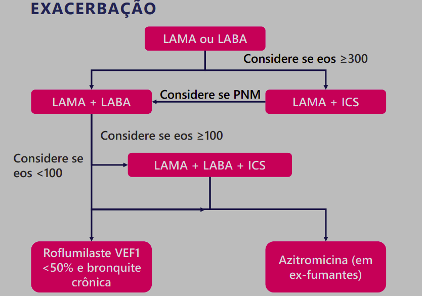 Qual é o único tratamento com nível de evidência A na exacerbação
