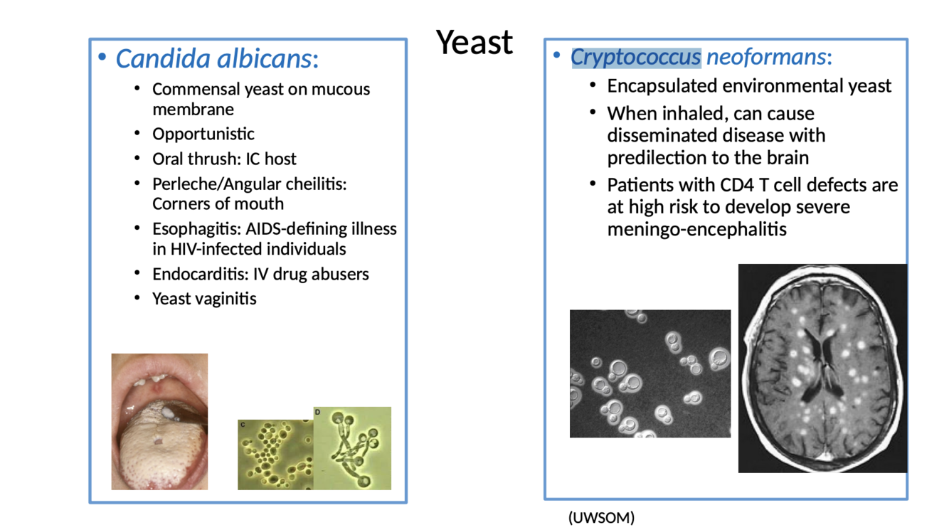 1) Candia albicans a common commensal of mucosal surfaces