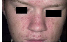 Localizada en el dorso nasal y región paranasal con eritema y descamación