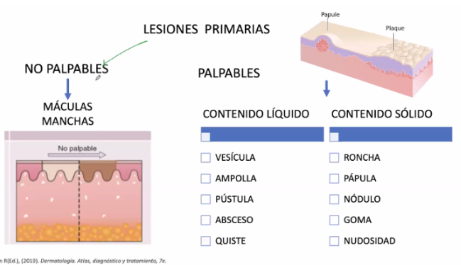 ¿Cuales son las lesiones primarias palpables, de contenido solido?