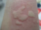 Elevación mal definica, consistencia elastica, limites mal definidos, evolución fugaz. Suele durar 24 hrs